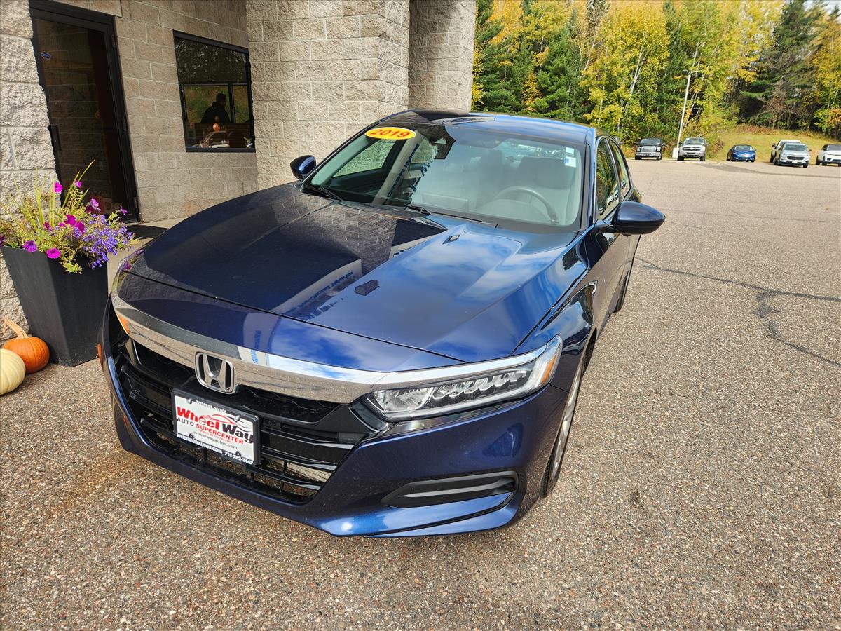 Introducing the 2019 Honda Accord LX, where style meets practicality - in a shade of blue that will make you feel like a superhero every time you drive it. This beauty has a snazzy 1.5L Turbo I4 engine under the hood, boasting a surprising 192 horsepower. It's like driving a caffeinated squirrel, only much more reliable and far less furry! With an astonishing 30 mpg in the city and 38 mpg on the highway, the only fuel you'll need to worry about running low is that of your enthusiasm for road trips!